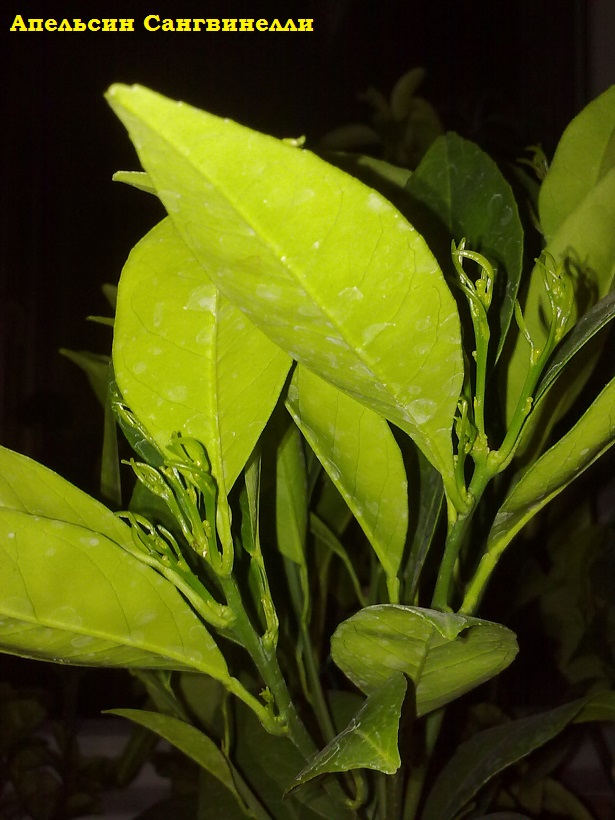 На Моро почки пока набухшие, а вот Сангвинелли активно пошел в рост, вот так выглядит почти каждая веточка