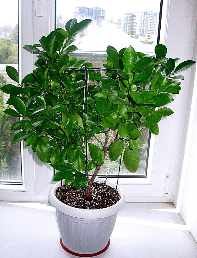Ещё один цитрус прекрасно растущий в условиях подоконника обычной квартиры. Показывал его здесь: http://citrusforum.org.ua/viewtopic.php?p=39472#p39472. За полтора года показал всего три прироста, но зато каких! Из небольшой прививки на трефе из 6-ти листиков, слегка потерявших тургор, набрал до 80-ти листов, и стал вполне пригодным для плодоношения.