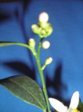 Подарок к Рождеству. Распустился первый цветок на Мейере. Запах возле стелажа с цитрусами не отойти. Предсавляю какой будет аромат в комнате, когда распустится большая часть цветков.