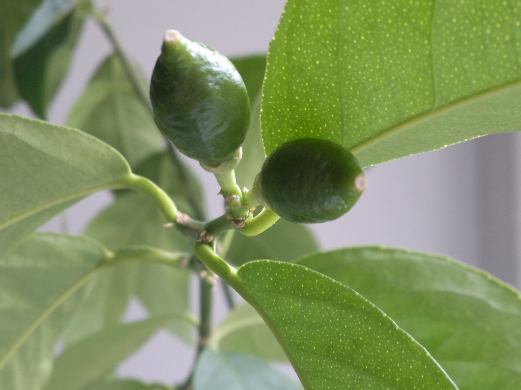 Прошло два месяца с времени цветения на работе укорененного лимона Мейера (писал тут http://citrusforum.org.ua/viewtopic.php?p=33029#p33029). На сейчас - самостоятельно сбросил всю лишнюю завязь (около 30-40 штук) и начал интенсивно наливать 4 плодика, которые остались на макушках двух скелетных веток.