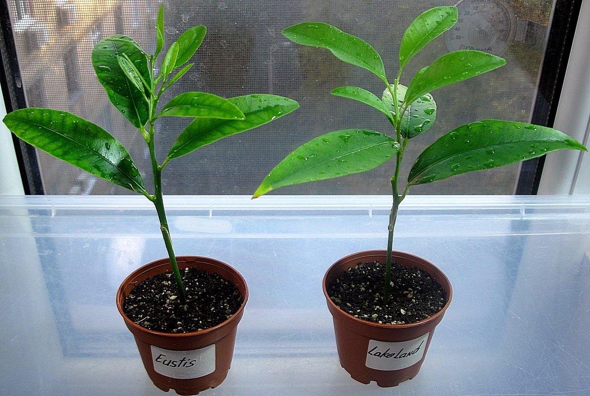 Получилась возможность сделать пару фоток, и я решил показать разницу, между привитым на какой то из трефовых гибридов цитрусом, и укоренённым, т.е. на своих корнях. В сравнении участвовали пара кровавых апельсинов.