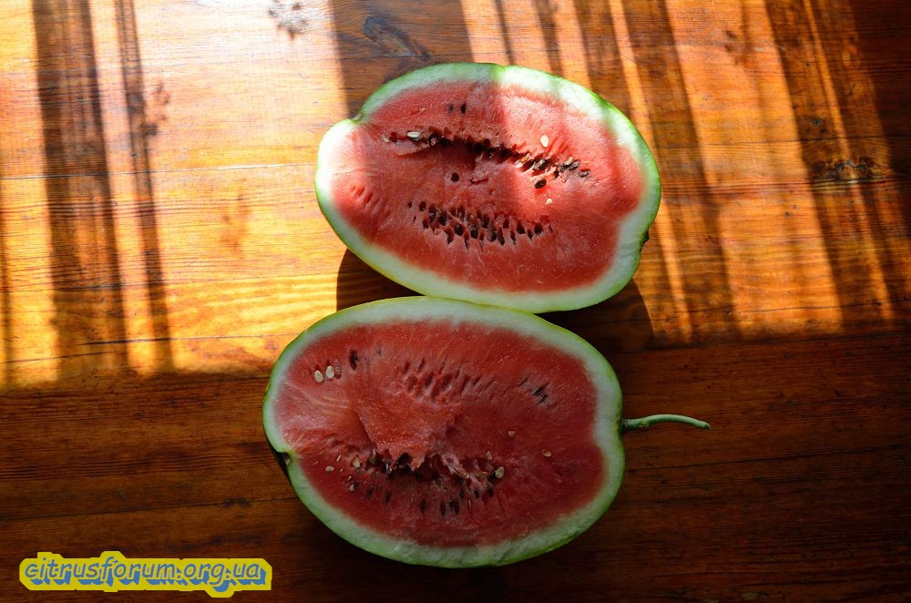 Арбуз Фарао Ф1 - самый крупный был около 5,5 килограмм. Вкус отличный, сахарный. Ничем не уступил рыночным.