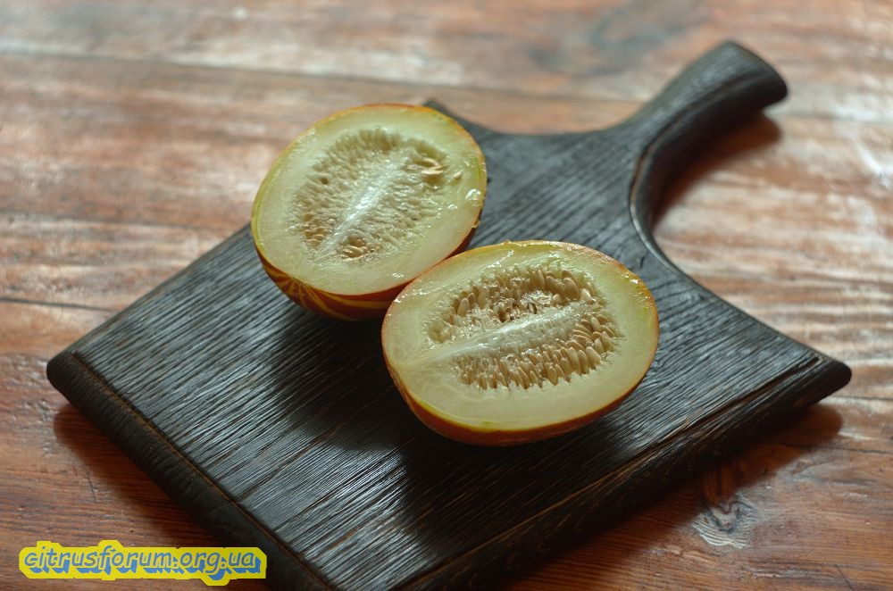 Шкурка при вызревании плотная, хрустящая, намеков на кумкватовые ноты - минимум. Кисленький да и все, нечего добавить.