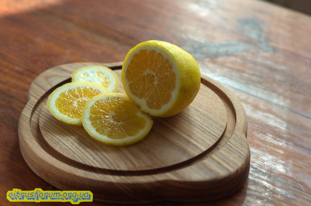 Оказался действительно сладким :) На разрезе имеет обычный лимонный аромат, цедра с приятной горчинкой, в целом нейтральная, классическая лимонная.