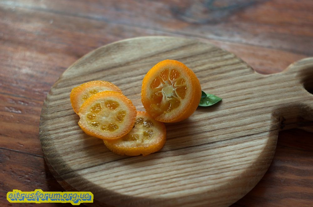 Кумкват Мейва. В этом году пальму первенства отдаю ему. Самый вкусный получился) Сладкая шкурка и сладкая мякоть.