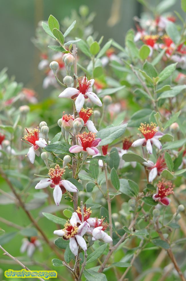 Фейхоа в этом году обильно цветет, бутонов очень много, красиво