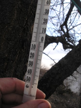 Сегодня с утра солнечно и на 8-00 температура в теплице на улице
