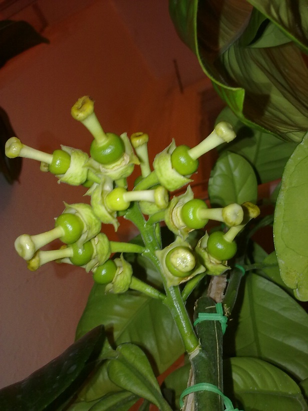 Закончилось цветение на Памело Као Пан образовав гроздь завязей, некоторые из которых начали увеличиваться. Если не ошибаюсь обычно из грози до стадии зрелости доходит максимум 2 плода.
