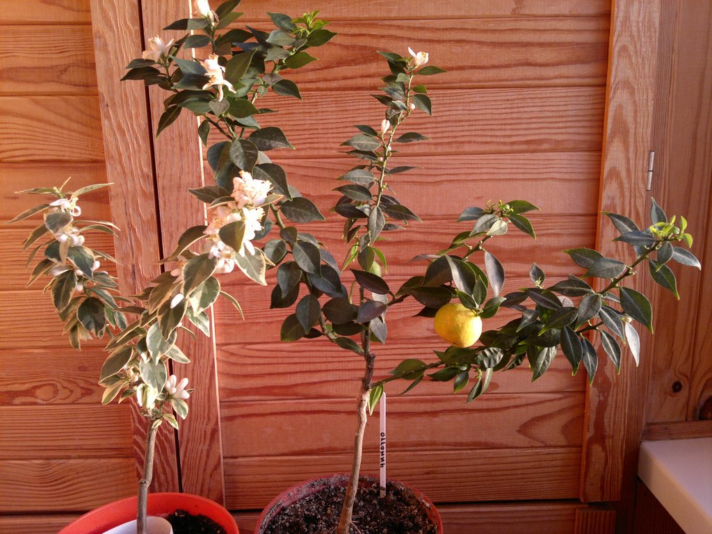 мой (dandr)арий полнился редкими новичками: Танжело Melinghina и гибрид MANDARED. А также воспилнилось два сорта, которые раньше у меня пропали: апельсин Фрагола и кумкват Мейва. Так вот Мейва и Мандаред привиты на цитрумелло на высоте 86 см. Хотел высокий штамб для горшка, что стоит на полу, а крона над подоконником балкона. Черенок Мейвы был с кучей листвы и всю ее скинул, но уже есть молодой прирост. Мандаред был с 4 листиками и довольно быстро выпустил новый прирост, но сбросил его в тепличке (в этом не очень урочном прививочном сезоне такое случалось на разных прививках. Связываю с тем, что прививки стоят на окне и возможно перегреваются во время кратковременного появления "зимнего" солнца. Обычно прямого солнца избегаю.). А вот Фрагола и Меленхина привиты в крону одного из зацвевших в прошлом году сеянцев, о котором писал здесь: http://citrusforum.org.ua/viewtopic.php?p=21383#p21383. Вот теперь думаю, как поступить с третьей "дикой" веткой? Отрезать или что-то на нее привить?-