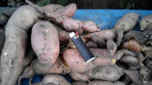 Также копнул сегодня немного батата. Я его посадил позно, и как читатели знают у меня все растёт само по себе " шо мать природа дала то и имеют" так вот с десяти кустиков я получил ведро. Самым паршивым оказался "пёрпл".