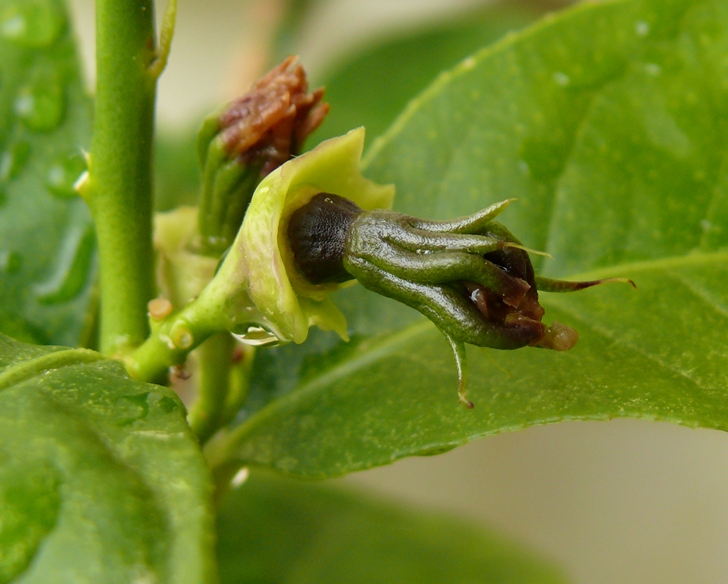 По своему "строению мякоти" что-то среднее между "традиционным" цитрусом и фингерлаймом. Т.е. вроде бы уже не простой цитрус, но ещё не с икрой)) Вкус достаточно кислый, кожура хвойно-маслянисто-цитрусовго вкуса/запаха. Очень привередливое растение. То обрастает листвой, то её сбрасывает. Мне кажется, что цикл жизни у листьев и веток папуаны очень короткий по сравнению с другими цитрусами. Мои такие наблюдения