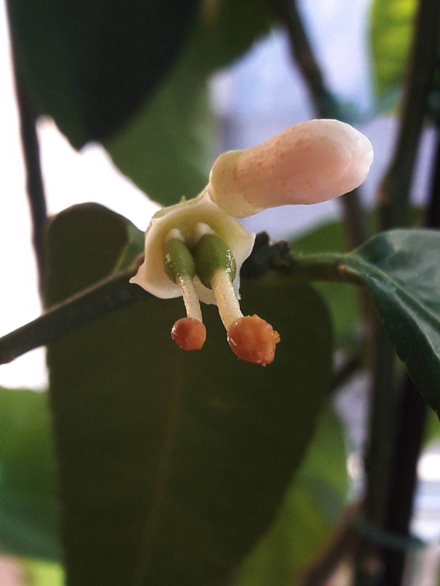 В этом году впервые выбросил бутоны C.limon "Sanguineum", сегодня потихоньку начал распускаться первый бутон... А там два пестика, такое на своих цитрусах вижу впервые, интересно получится ли из этого цветка завязь.
