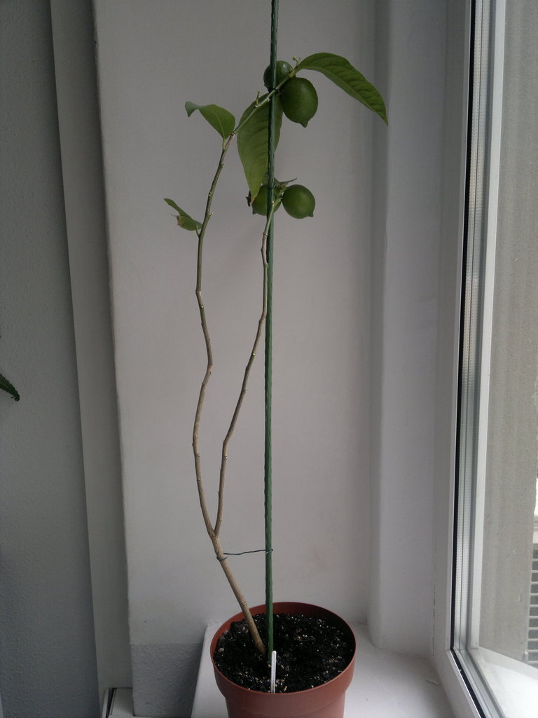 На рабочем подоконнике тоже есть потери. Полностью усох Каломандин. Теперь у меня нет ни пестролистых, ни обычного. Все, как говорится происходит в рамках кампании по замещению кислятины в коллекции :-) . Пришлось также разгрузить от плодов Мейер у котрого осталось 4 листика на 4 плодика. Поскольку на ветках начали просыпаться почки, решил пока, в порядке эксперимента оставить 1 плод. Зато теперь пью чай с "лаймом".