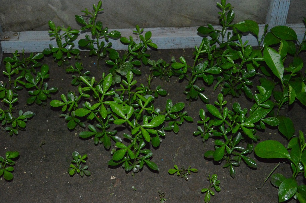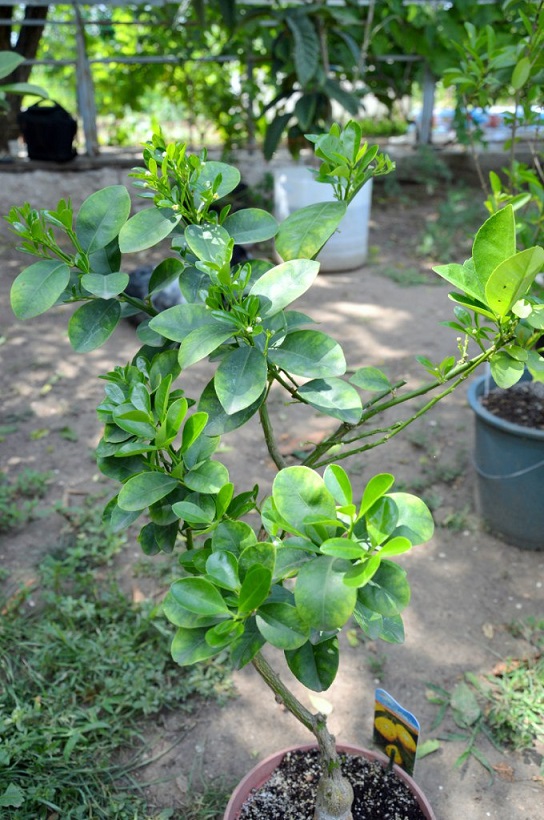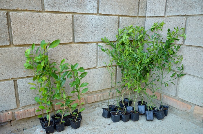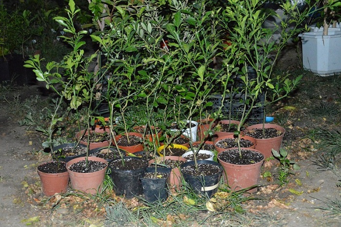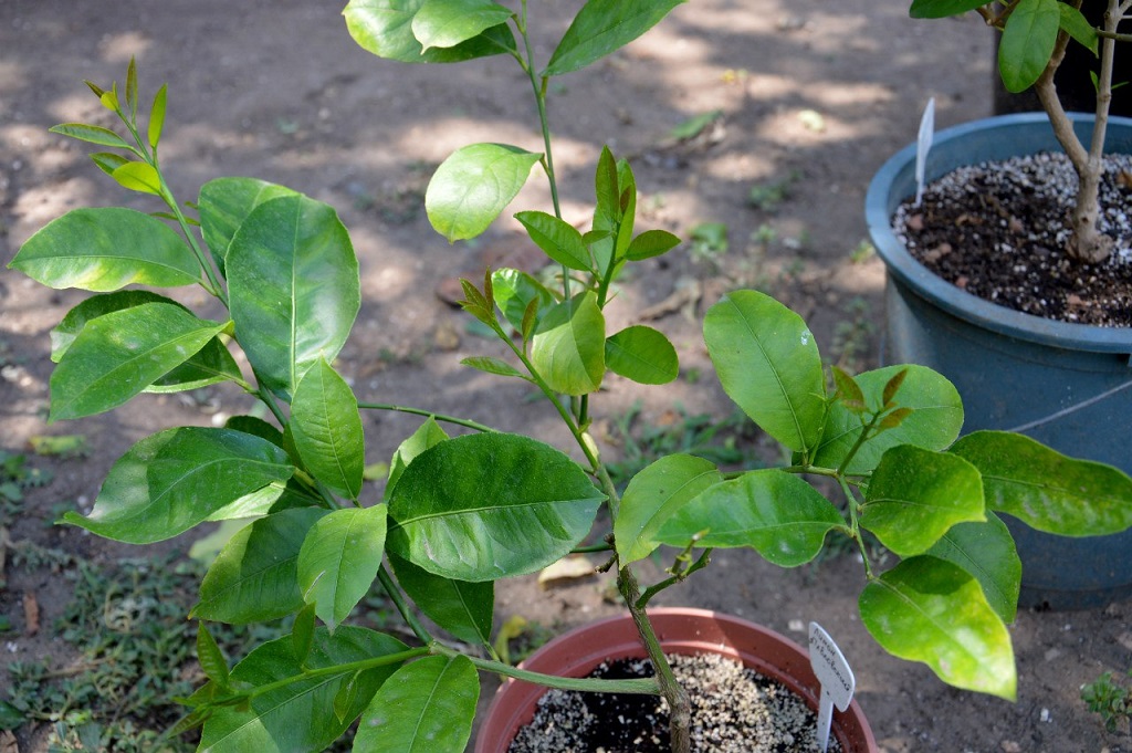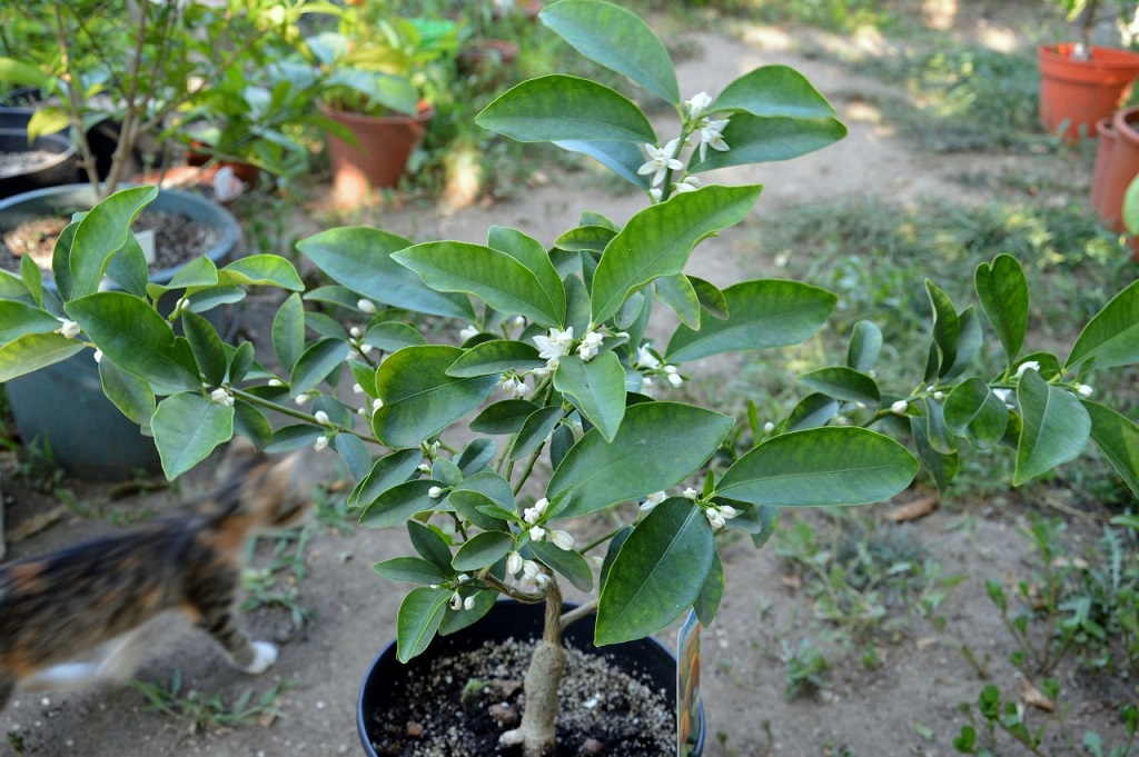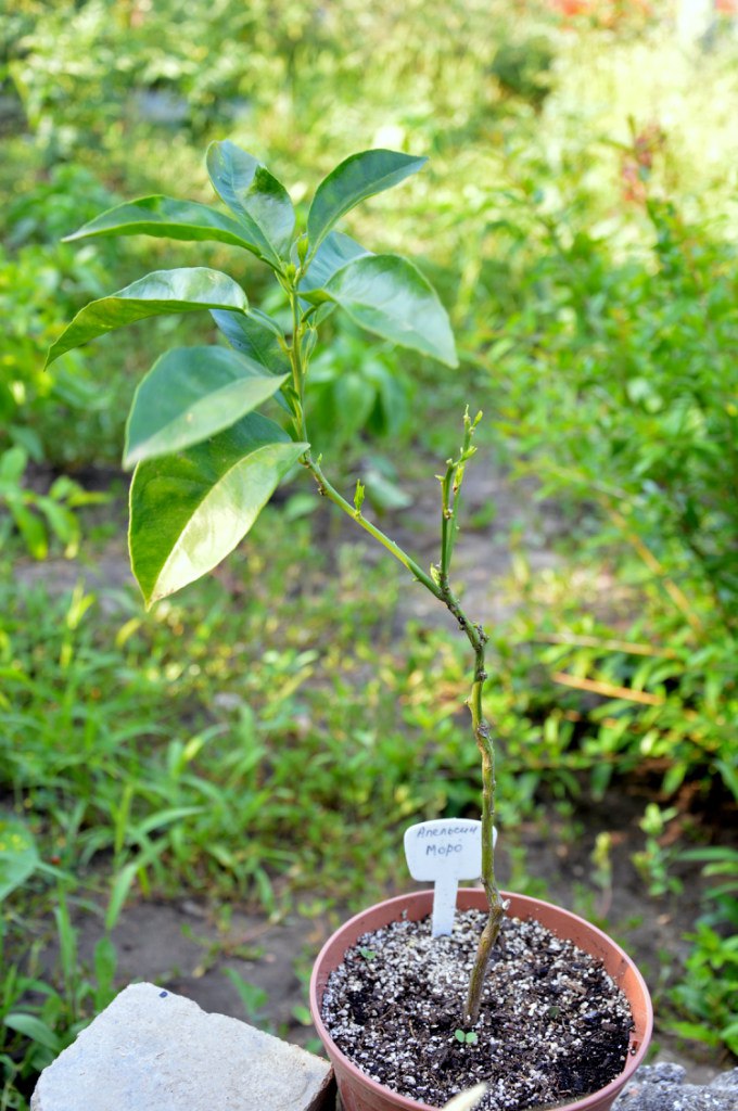 Растут фукуши, бергамот кастагнаро, лимон павловский, кумкват мейва, апельсин бонанза и неизвестный пестролистный апельсин)