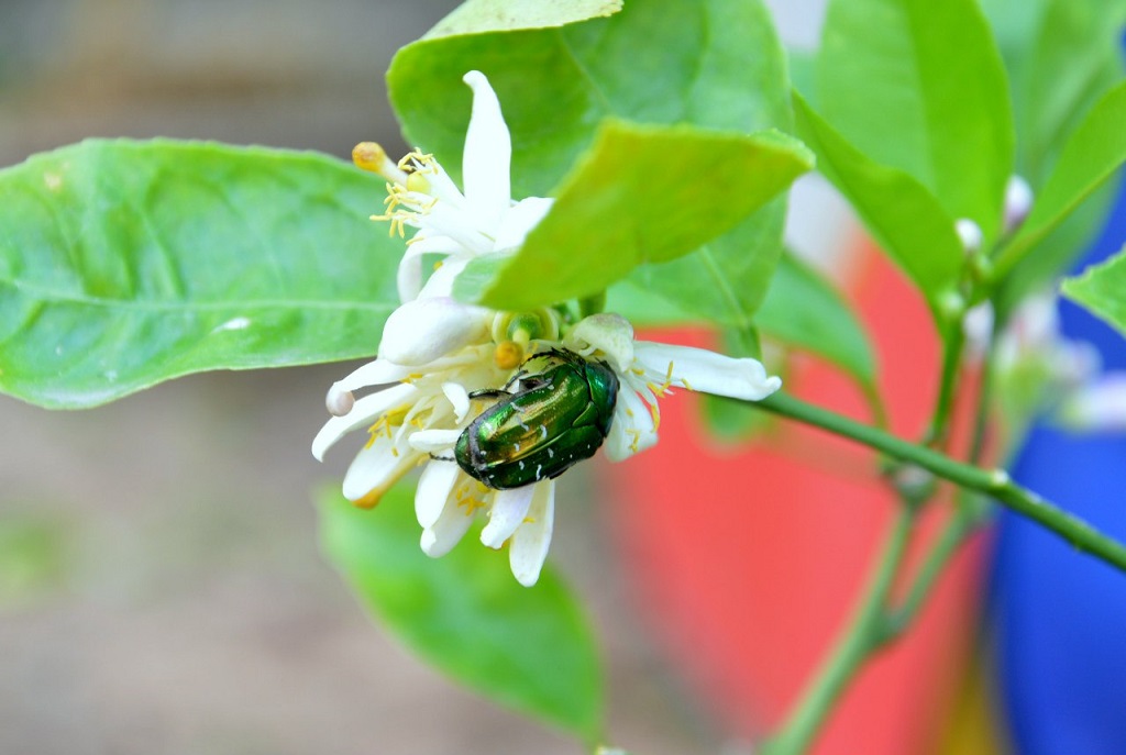 Сегодня увидела что цветы моего мейера облепили очень красивые жуки. Специально сбегала за фотоаппаратом в дом чтоб запечатлеть этот момент. Они такие красивые, я думала что они просто едят там себе пыльцу, и старалась даже не тревожить их. Но Танюша Кузьмук объяснила мне (горе-садоводу) что это бронзовка, и это злой жук который наносит вред. Ест бутоны и даже плоды могут подпортить. А еще они портят цветы(( Вот так вот обидно, с такой красивой внешностью эти чудо-жуки оказались злостными вредителями
