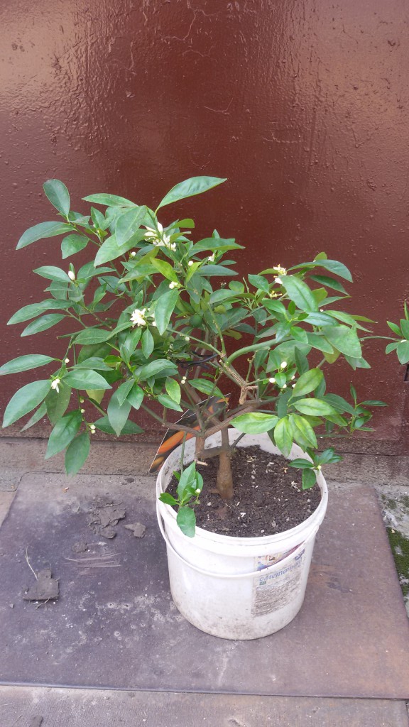 Мандарин Уншиу, один из моих первых цитрусов. Чуть больше 3 лет ему уже. Высота 1,1 м.