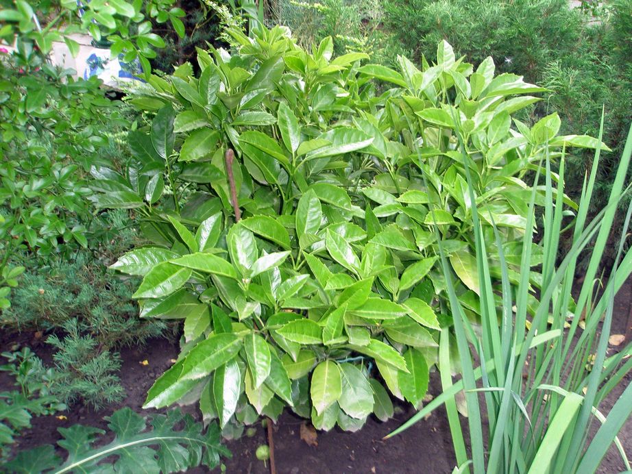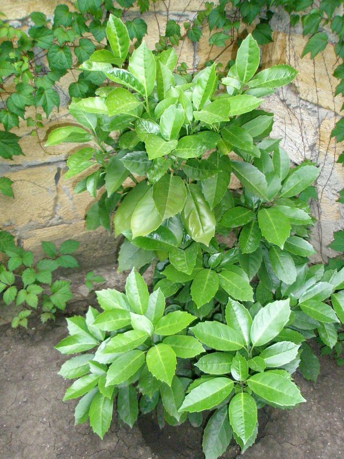 Ещё две аукубы с зелёными листьями. На солнце у аукубы листья желтеют.