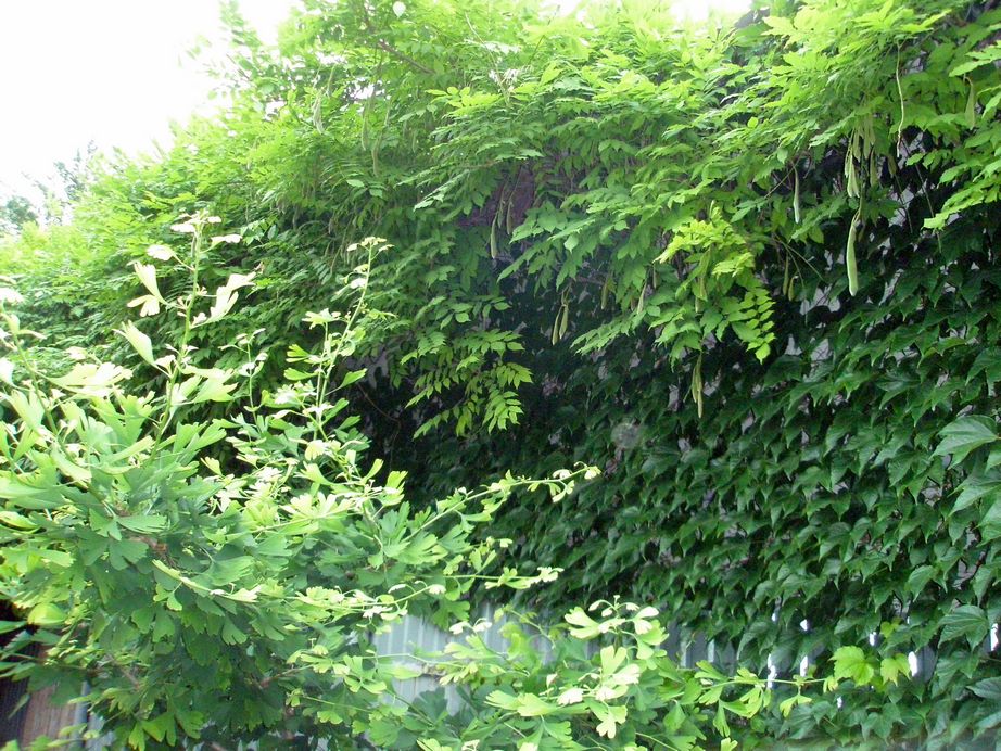 На глицинии уже бобы, гинкго опять пышно растёт, а виноград всё больше занимает площадь. Каждое лето у них "разборки" кто больше займёт места. Я их мирю секатором. :-)