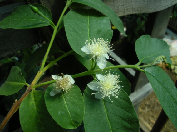 Этой весной меня порадовала - впервые зацвела бразильская гуава, сеянец возрастом 6 или 7 лет. Плоды должны быть значительно крупнее, чем у псидиума прибрежного, на данное время они вот такие. Если даст Бог и они созреют, да ещё и вкусными окажутся - можно будет и поразмножать)).