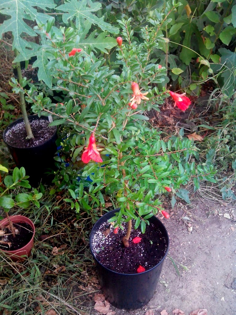 И впервые полноценно цветет мой красавец гранат Нана, кажется даже плодики будут :-):