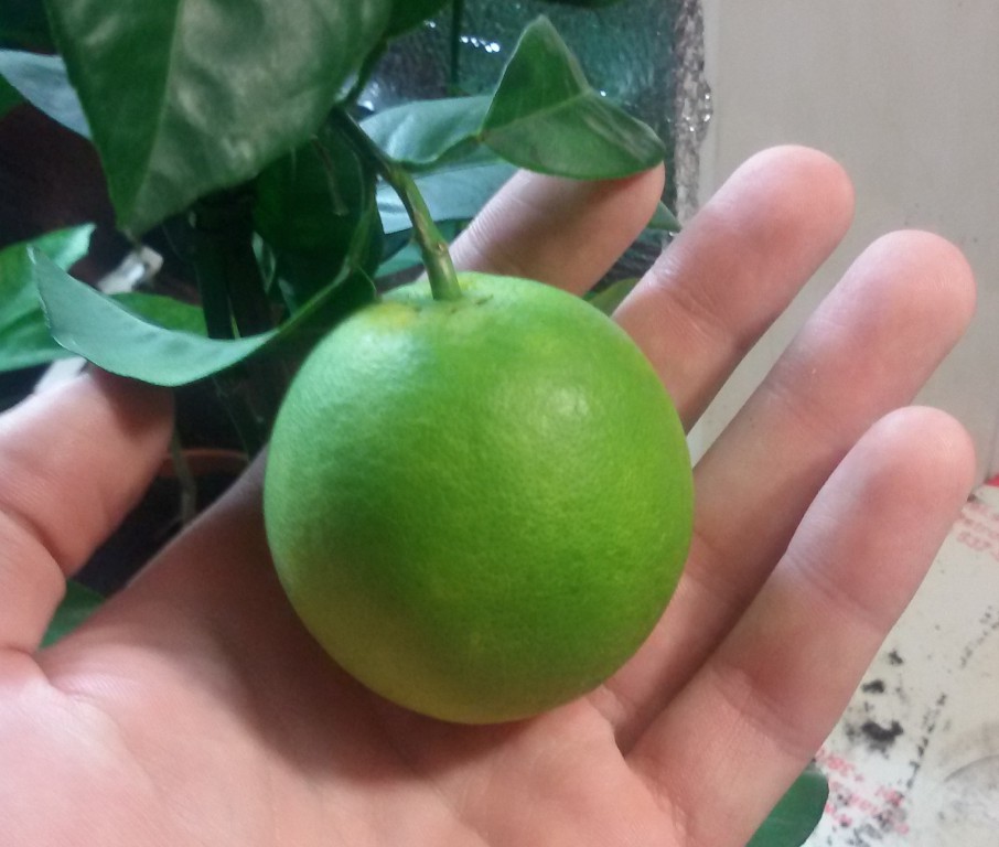 Вашингтон Навел в августе почувствовав весну расцвел и навязал плодиков, и хотя я его хорошо кормил, растение видать еще небольшое, и я его немного перегрузил урожаем, в итоге имеет 3 плодика размером со средний мандарин, начинают спеть (5,5 месяцев), понимал ведь что надо было оставлять меньше,но кто устоит перед любимой с блеском в глазах? :hi_hi_hi: