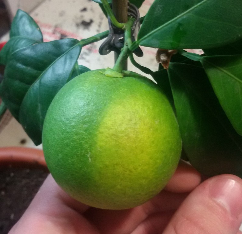 Еще одна догадка о бессмянности: во время фотосессии месяц назад случайно был отломлен один плод размером в половину спелого. Я для интереса его разрезал посмотреть и в нем не было семян. Я тогда не придал значения, а сейчас задумался что возможно также от клементина передалась некая особенность бессемянности без опыления (как у меня было при цветениях).