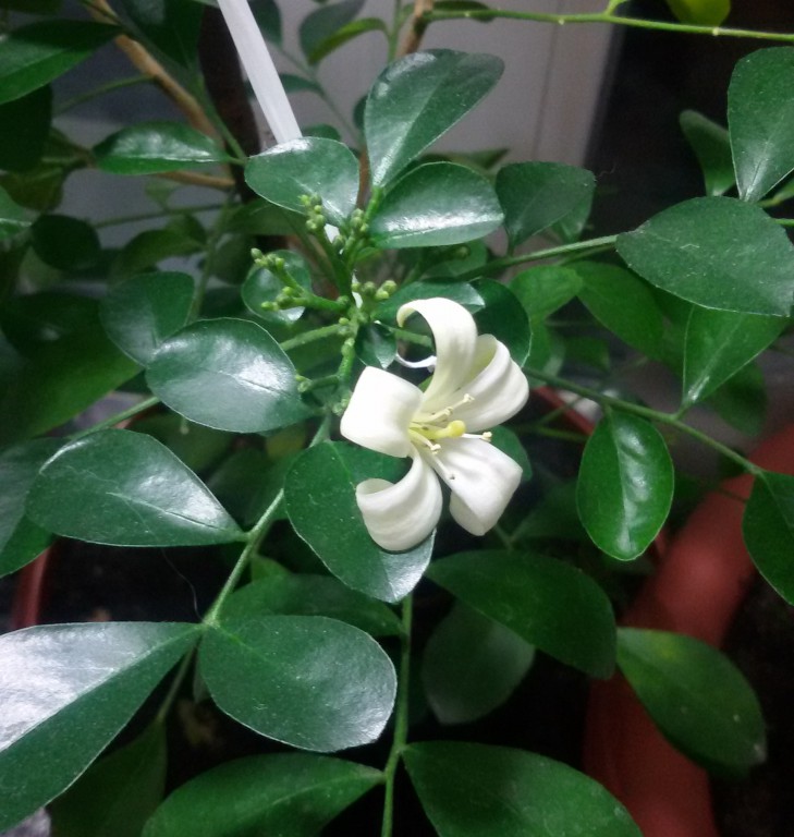 Не перестает радовать мурайя, кормя 40+ ягодок, она по чуть чуть где не где выпускает по 1 бутончику)
