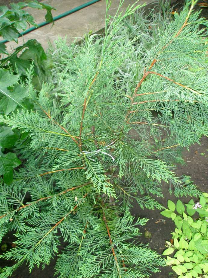 Туя с шишечками, ель обыкновенная, но для меня очень ценная - с Карпат привозили три раза, но принялась только третья. И малыш кипарисовик - сорт неизвестен. Счастливчик «Lucky» - из 50 поставленных черенков он один пустил корни.
