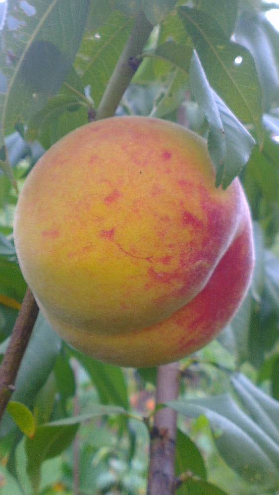 Персик, посаженый в прошлом году, дал первый урожай, два плодика