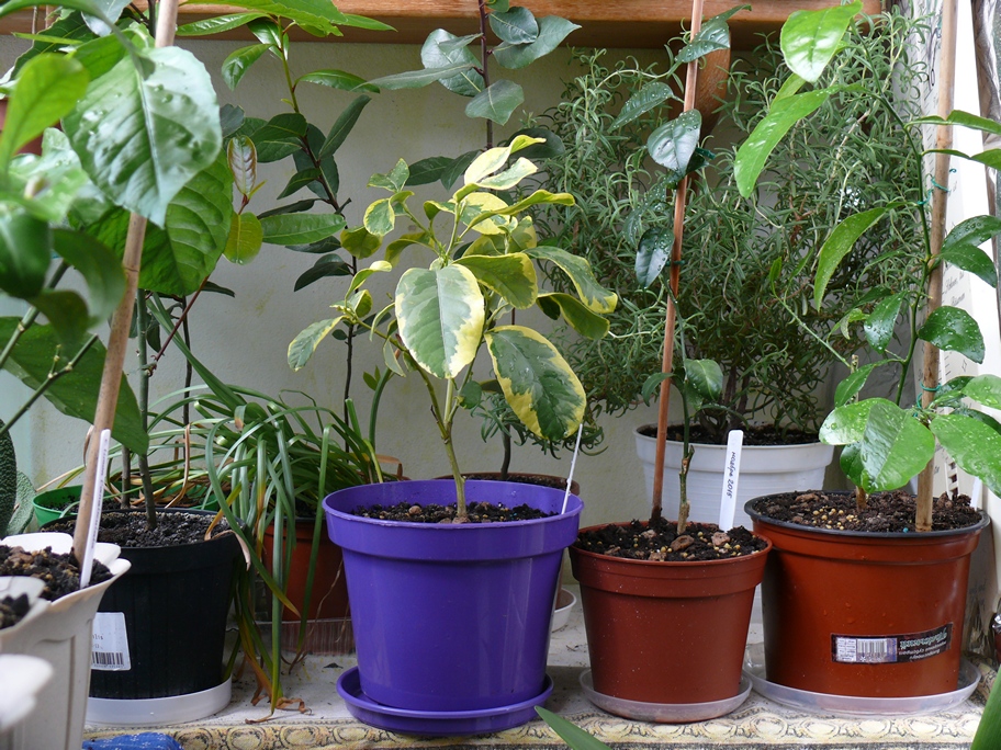 Возможности ограничены двумя балконами, поэтому всё не так масштабно, как хотелось бы) Балконы ориентированными строго на север и строго на юг. Полностью обжит южный балкон. С цитрусами растут их субтропические собратья - лавр, розмарин, карликовый гранат, фейхоа, эвкалипт, стрелеция и много разного по мелочи.