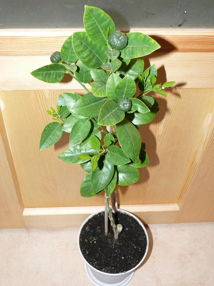 На весну были куплены ныне покойный лаймкват Юстис и ныне здравствующий лаймкват Апирено (Limequat Apireno, C. aurantifolia Messicana x Fortunella)). Росли они так себе. Но то, что они вообще живы уже было на тот момент достижением :-)