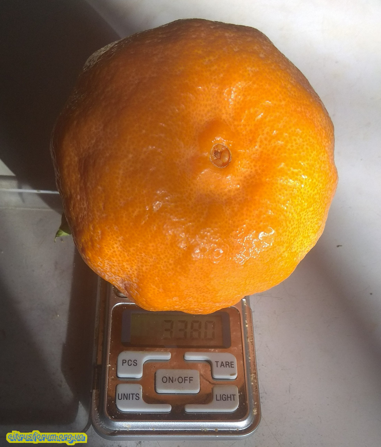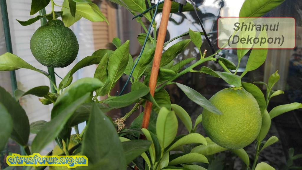 ). Однак на тому деревці, де росте плід з класичною декопоновою формою є ще один плід округлої форми (на оде фото не дуже влазять), який майже ідинтичний тому, що і на цьому фото.Декопон (Dekopon, citrus Sumo)
