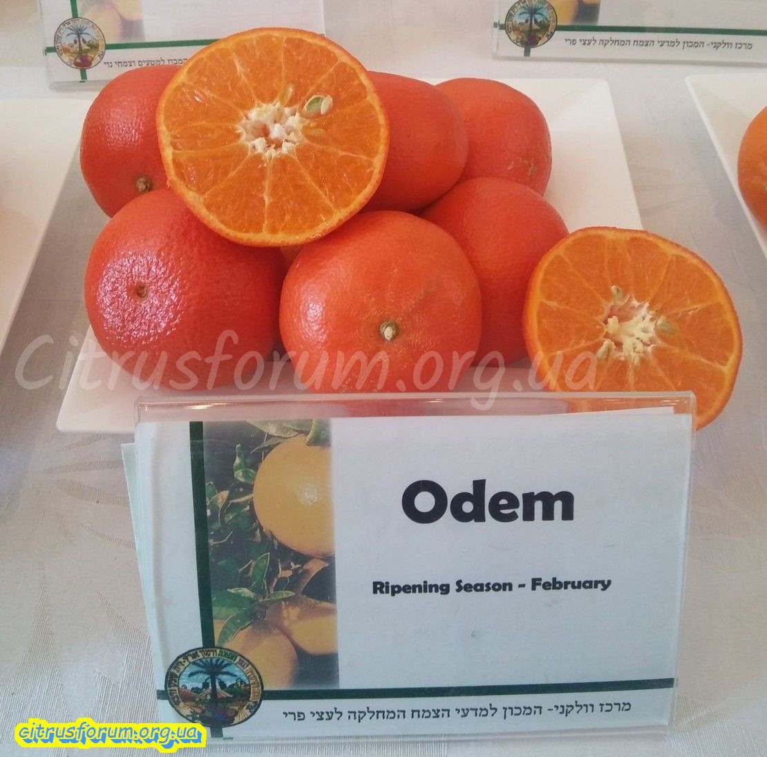 Ізраїльський сорт мандарина "ODEM", особливо характеризується легким лущенням, дозріванням середнього сезону, високою якістю аромату, плоскокруглої форми плодів на кінці стебла, плодами середнього розміру і темно-оранжево-червоним кольором шкіри. Це було результатом схрещування мандаринів ‘ORAH x SHANI’ виготовленого винахідниками у 1985р. в Центрі Волкані.