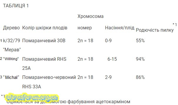 k/32/79, позначений як "Merav", характеризується плодами, що мають кілька насіння та квіток із пиляками (част. тичинки), що містять напівплідний пилок. Він схожий за пологом листя та формою листя на мандарин «Michal». У таблиці 1 наведені деякі характеристики нового дерева порівняно з насіннєвим батьком 'Wilking' та пилковим батьком 'Michal'.