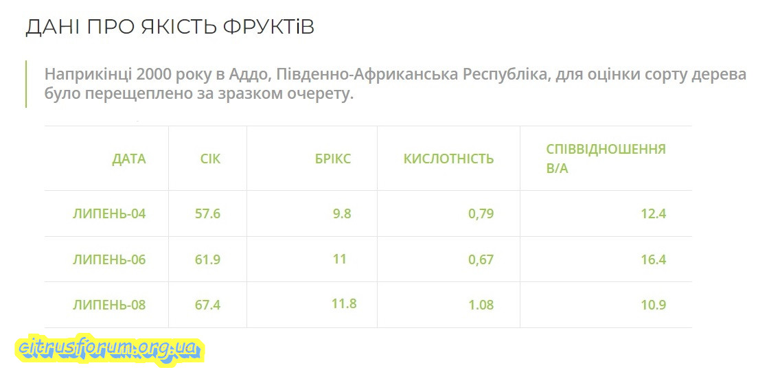 Підщепа використана в оцінюванні: цитранж Carizzo.