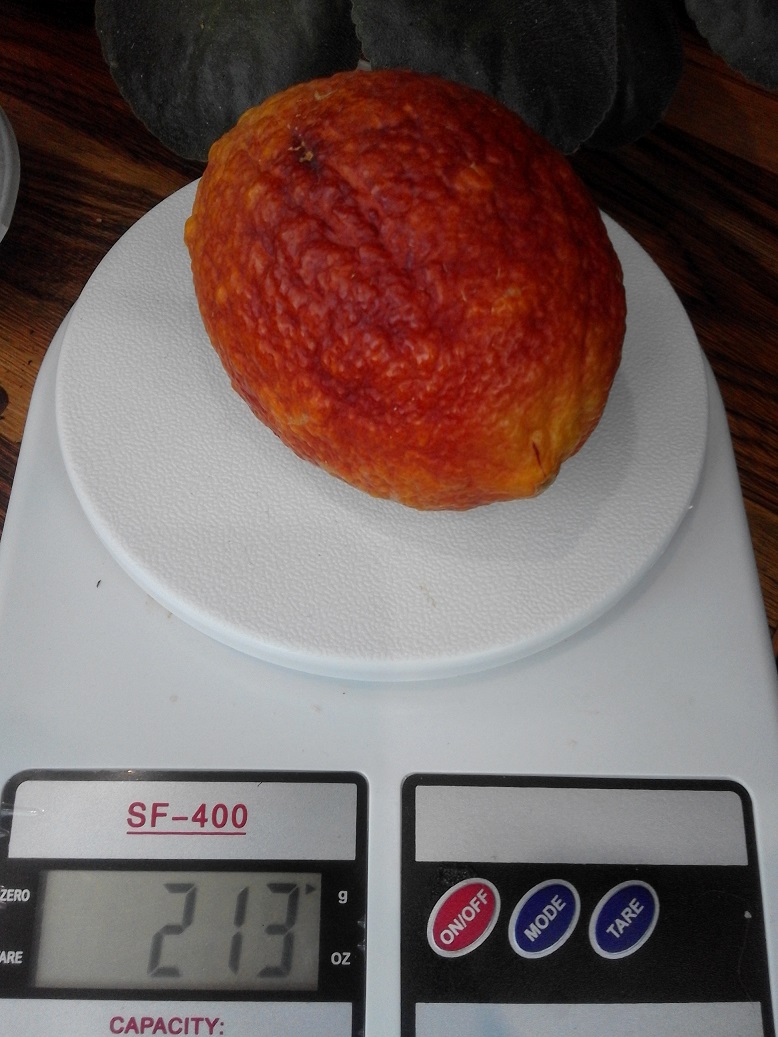 Плод можно сказать срезал во время, еще не много и мякоть думаю начала бы становится суховатой. Аромат при разрезании явно апельсиновый, мякоть сочная, слабо кислая, очень вкусная. Кожура мягкая, не горчит.