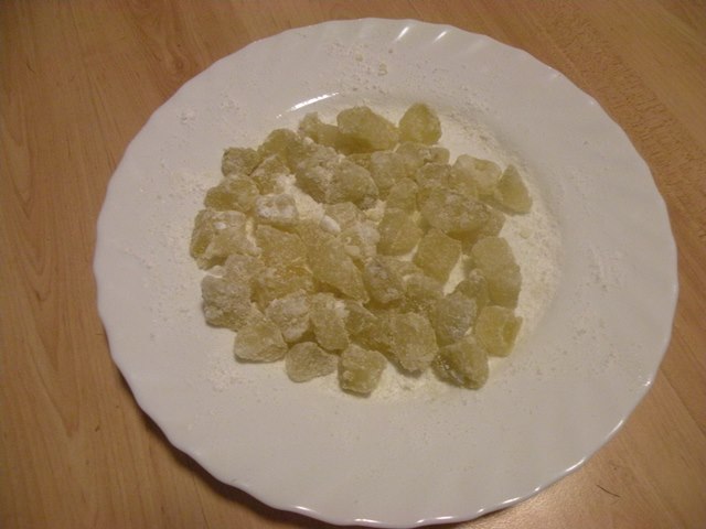 Я также сделал засахаренныe кусочки манго и смешал ето вместе с кусочками цукаты