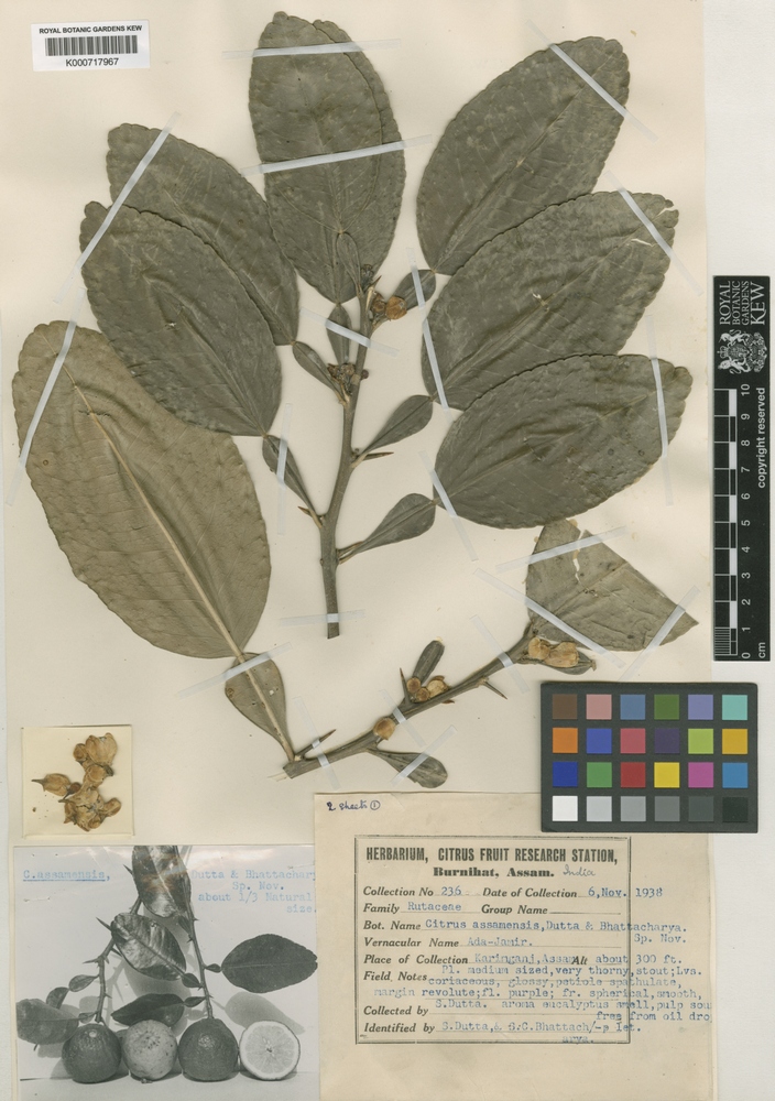 Предшествующее описание было дано Джин Лестер, который растил это дерево в Центральной Калифорнии. Имбирный лайм (Citrus assamensis) был у него таксономически ближе с Кафрским лаймом (Citrus hystrix), но авторы Бхаттачария и Датта сочли их достаточно разными в их всеобъемлющей монографии Цитрусовые Ассам (1956).