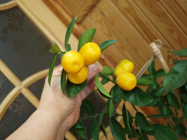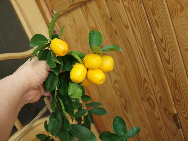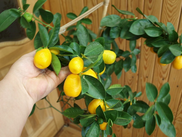В этом году моя Обовата поспела очень рано. Обычное время для поспевания кинканов - Новый год. Так поспевают и Маргарита и Мейва, а вот Обовата изменила характер. Вот фото в полный рост и с почти полным урожаем. Немного уже сьели, скоро будем обрывать оставшиеся плоды. На дереве есть еще небольшие завязи. Вот они наверно и дотянут до Нового года.