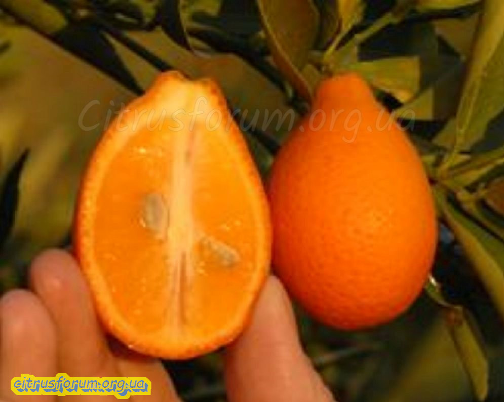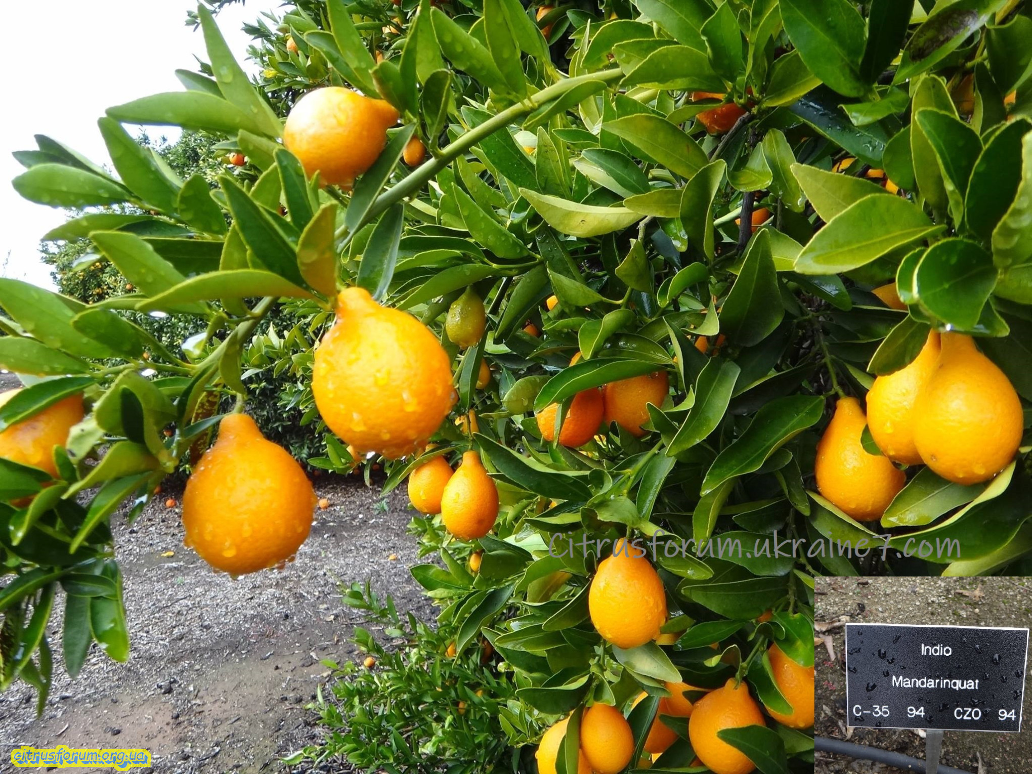 Кумкват Indio mandarinquat є гібрид: Fortunella margarita 'Nagami' x reticulata 'Dancy'