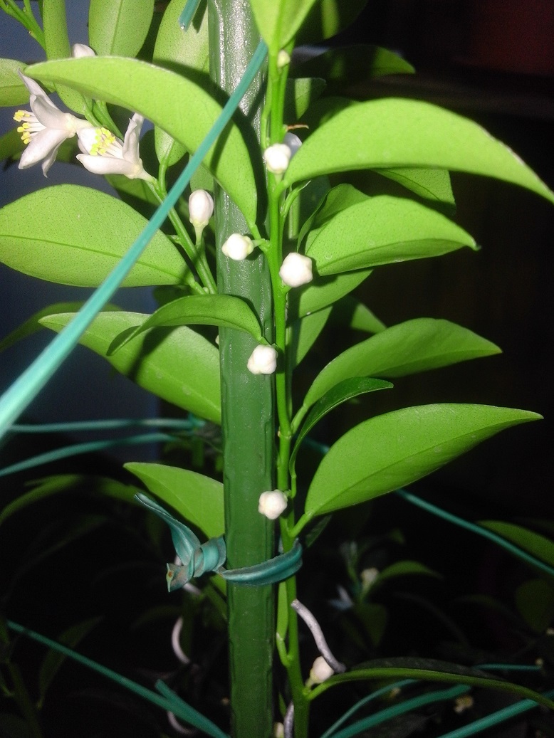 Растение очень хорошо чувствует себя в балконных условиях, растет практически не прерывно, новый прирост начинается, когда предыдущий еще до конца не вызрел. Думаю свою не прихотливостью Санрайз унаследовал от каламондина. Цвести, как и кумкваты начинает с мая. Первая волна цветения была не значительной, а вот вторая очень массовая бутоны до сих пор появляются. Уже есть и первые завязи, интересно сколько завязей дойдет до созревания.