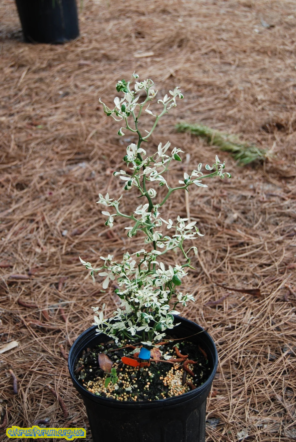 Це досить унікально тим, що новий приріст виходить повністю білим, як стебла, так і листя. Потім, коли деревина починає тверднути, стебла поступово зеленіють. Його листя може бути абсолютно білим або мати зелену середину з широким білим краєм. Нещодавно деякі з наших старих рослин зацвіли та плодоносили, але плоди були досить дрібними. Більшість цитрусових виростає з насіння, тому буде цікаво побачити, чи перенесеться різноманітність у його розсаду. Ми залишили його на вулиці в контейнері всю зиму без захисту, і не було жодних пошкоджень аж до підліткового віку. Оскільки це щеплені рослини, потрібно стежити за всіма зеленими нащадками, які будуть виходити з підщепи. Просто видаліть їх за допомогою секатора якомога ближче до стовбура. У міру дорослішання рослини проростання підщепи припиняється. Якщо говорити про його морозостійкість, то у нас був клієнт із Коннектикуту, який успішно вирощував його на вулиці в землі.