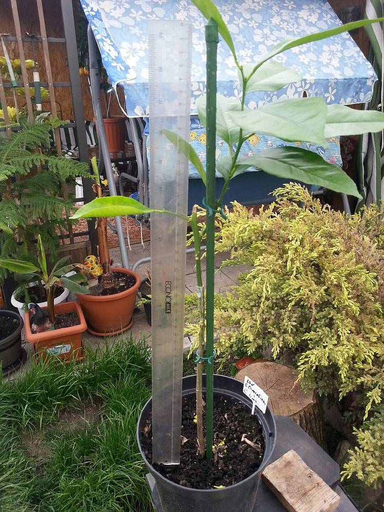 По просьбе Тани покажу гибрид (лимон х Клементин) приобретенный у нее, который сидит на помело. Два фото, первое 11.05.15, второе сегодня. Разница ощутима.