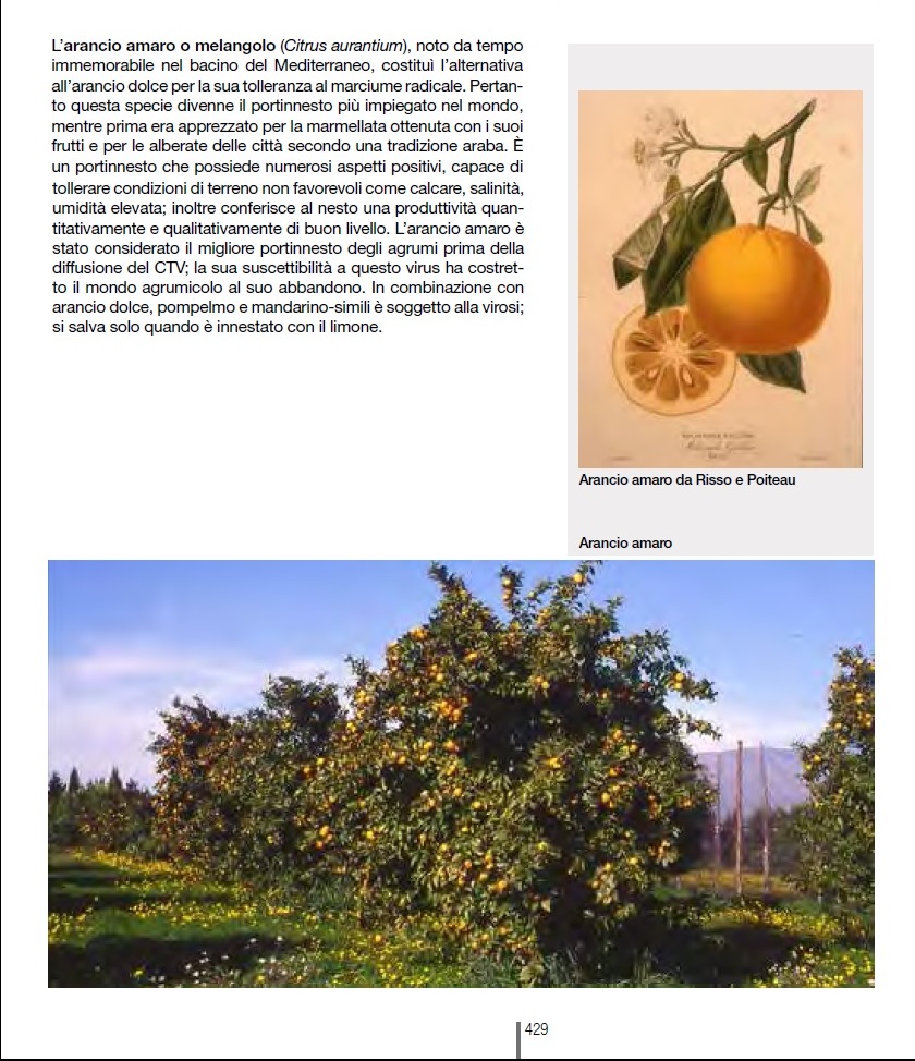 Горький оранжевый или горький апельсин (Citrus aurantium), известный с незапамятных времён в Средиземноморском бассейне. Он стал альтернативой сладких апельсинов из-за его толерантности к корневой гнили. Поэтому этот вид стал самым обычным подвоем в мире. Это было ещё до того, как он был оценен за варенье, полученное с его фруктов и деревьев городов по арабской традиции. Он имеет множество положительных сторон, способных переносить неблагоприятные условия почвы, такие как известняк, соленость, высокая влажность. Кроме того, он обеспечивает количественную производительность урожая и качественно хорошего стандарта. Горький апельсин считался лучшим подвоем цитрусовых до диффузии CTV. Его восприимчивость к этому вирусу вынудил цитрусовый мир отказаться от него. В сочетании с сладким апельсином, грейпфрутом и мандарином, подвержен вирозу, кроме тех случаев, когда он прививается лимоном.