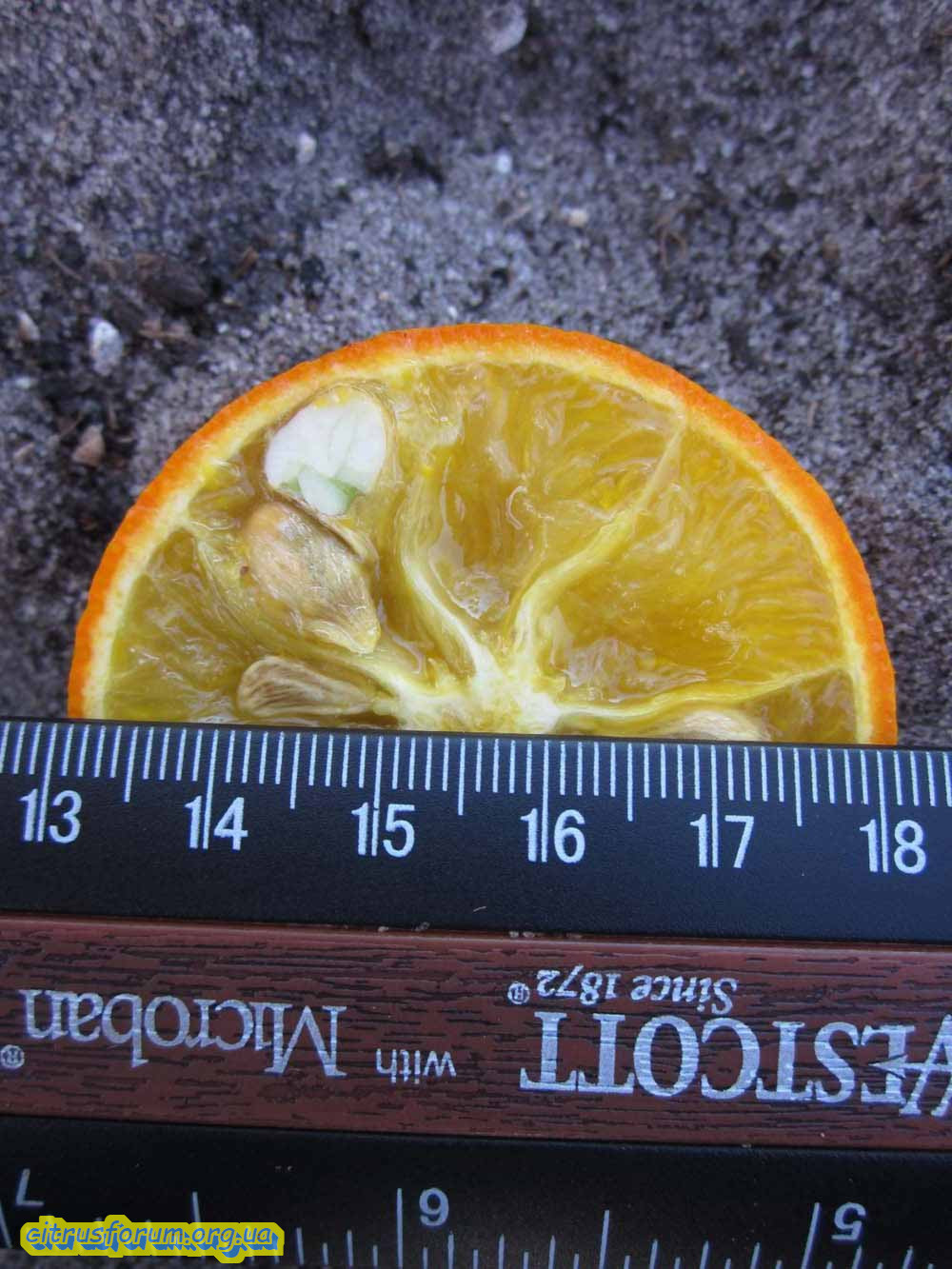 Два сіянці, з яких було вирощено кілька брунькових дерев, нагадують звичайний солодкий апельсин за листям і загальним характером і, очевидно, є помилковими гібридами з насіння додаткових, поліембріональних ембріонів, які, як пояснювалося вище, розвиваються з певних клітин материнська тканина без втручання чоловічого елемента. Ці два сіянці мають однолисте листя та вічнозелені, як звичайний апельсин, і, хоча вони ще не плодоносили, через те, що їх кілька разів заморожували, не очікується, що вони дадуть щось цінне, ані, судячи з уже проведеного тесту, чи будуть вони виробляти більш витривалі типи. Інша розсада. № 716, був суто проміжним типом, маючи трійчасте листя, схоже на чоловіче батьківське листя, але досить більше. Навіть перші листочки молодої розсади виявляли цей характер, і фотографія розсади, але трохи більше 1 дюйма заввишки, опублікована авторами того часу, чітко показує цей трилистий характер. Крім того, № 716 був набагато більшим і більш сильним, ніж два інших сіянці, демонструючи збільшення сили, що є настільки помітною характеристикою гібридів загалом. Навесні 1899 року в розпліднику пана Г. Л. Тейбера в Глен Сент-Мері, штат Флорида, на деревах були оплодотворені ці гібриди. Перші плоди були отримані у вересні 1902 року, одне дерево того сезону дало близько дюжини плодів. Восени 1903 року це ж дерево дало близько бушеля плодів, а кілька інших дерев, що розпустилися на трійчасто-помаранчевій підщепі, дали близько півдюжини плодів кожне. Подібна кількість була також вироблена в 1904 році. Таким чином, було вироблено достатньо плодів, щоб дозволити досить ретельне випробування цього гібрида».