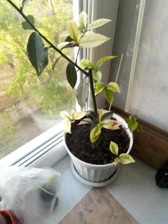 Пересажен в универсальный грунт и больший горшок, из-за светлого молодого прироста, переставлен на юго-восточное окно. Поливал фитоспорином, т.к вычитал, что это вроде как грибок,...