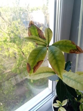 Залив конкретный! Из-за этого нехватка целого комплекса макро и микроэлементов. Грунт на основе торфа это беда! Наберите где-то в лесу из под деревьев почву, добавьте крупнозернистого песка, найдете перегной или компост - добавьте и его. Всю почву с корней смыть, корни осмотреть, подгнившие удалить и посадить в новую почву, убрать с прямого солнца, можно пакет на голову растюхе. А дальше главное - не заливать! Такая почва будет просыхать равномерно, а на основе торфа - сверху сухой порох, посередине кома - болото.