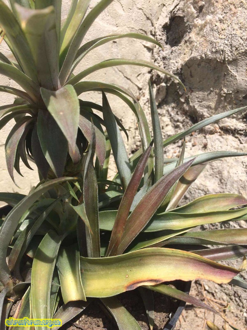 Подскажите перелил или пересушил ананас на листьях фиолетовый оттенок и частями желтоватые