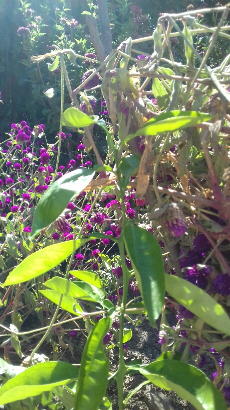 не подмерзал и выглядит неплохо. Сила роста у него очень умеренная видимо в напичканном разными травянистыми типа артишока растениями и разными цветами Райском Саду ему не хватает наверное пока что солнца и плодородия почвы. Хотя расти он конечно будет. И возможно что из самых морозостойких его плоды будут лучшими, посмотрим.