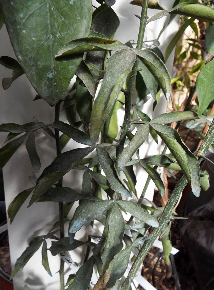 Уншиу Миагава на апельсине - изменение цвета листьев, многочисленные морозобоины на ветках, более низкую температуру не потянет. Здесь проявилось явное преимущество трефы как подвоя.